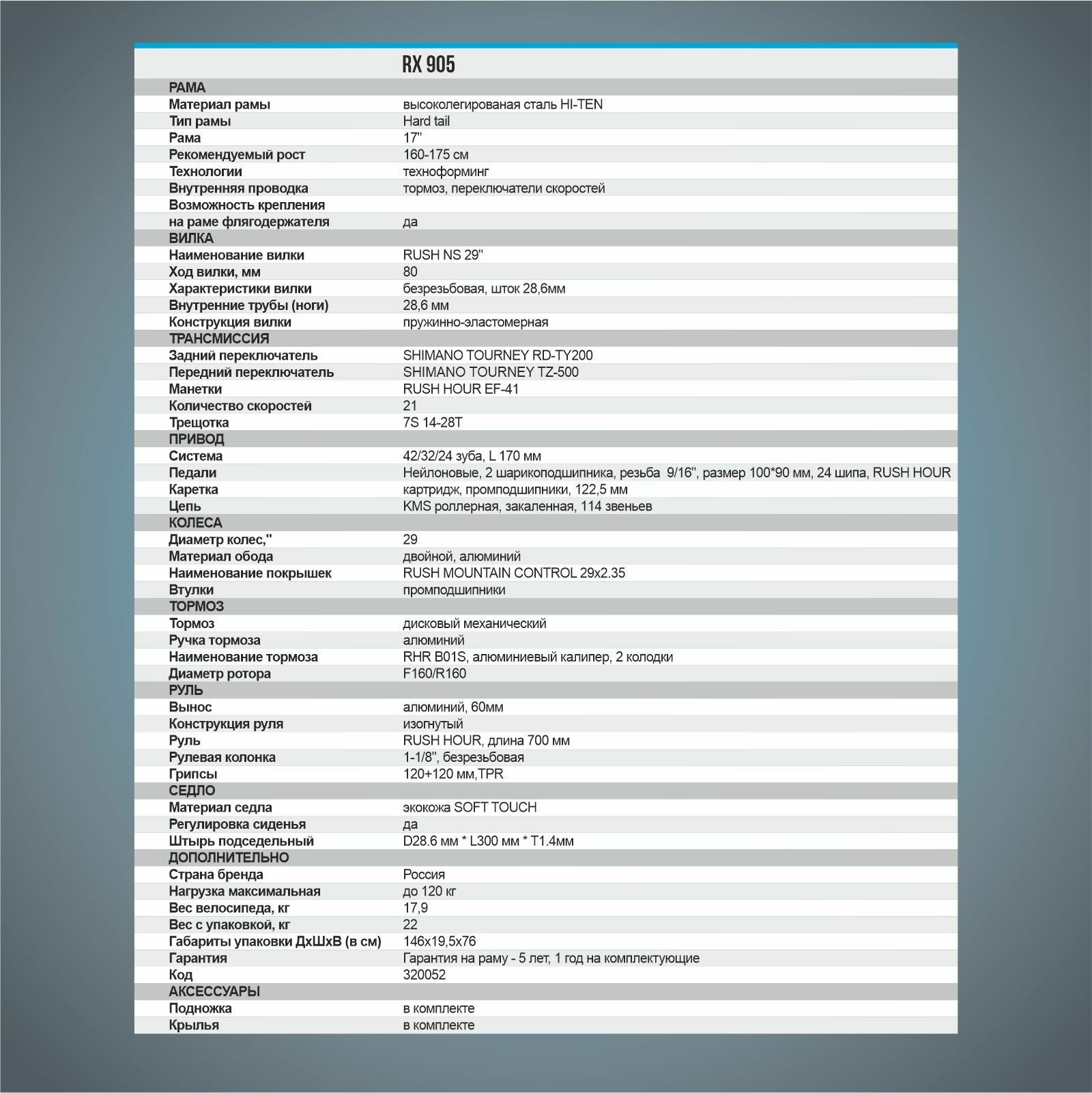 | Диаметр колес | 29 дюйм |