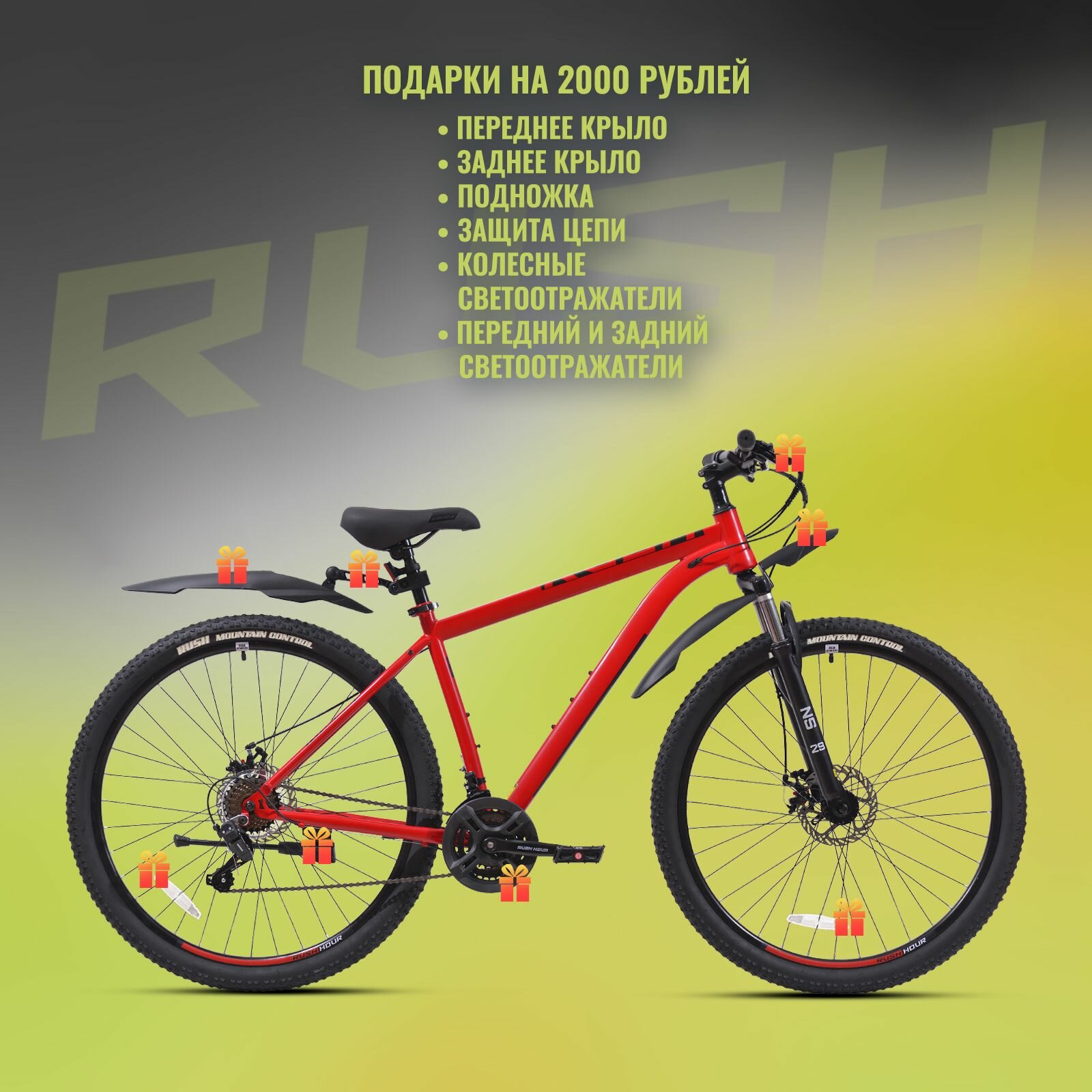 СохранитьВелосипед взрослый горный дисковый 29" RUSH HOUR RX 905 21 скорость красный рама 17" рост 160-175 см. скоростной мужчине спортивный с амортизацией найнер переключатель SHIMANO интересное: