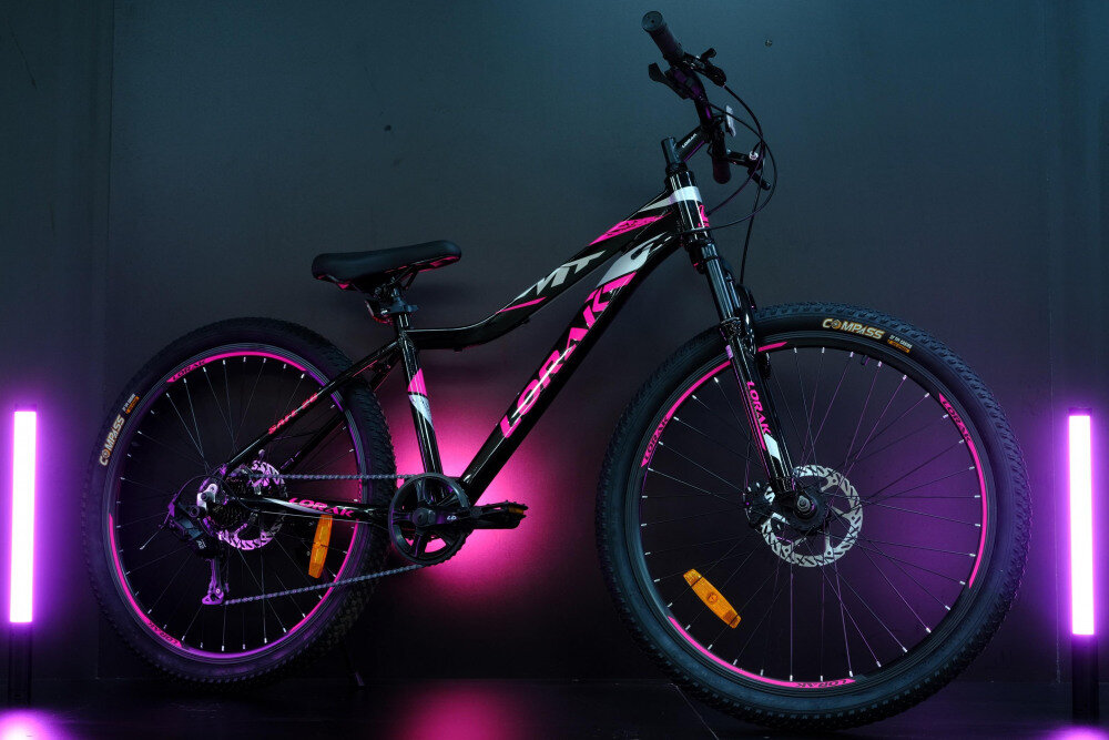 Велосипед LORAK Safe 26 Чёрный/Розовый, алюминиевая рама 15 дюймов под рост 140-160 см, интересное: