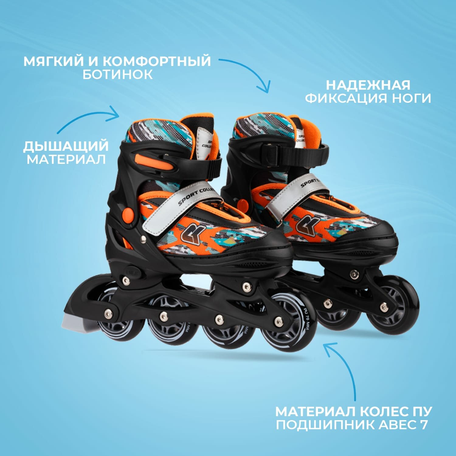 СохранитьРаздвижные роликовые коньки SPORT COLLECTION оранжевый (29-32) интересное: