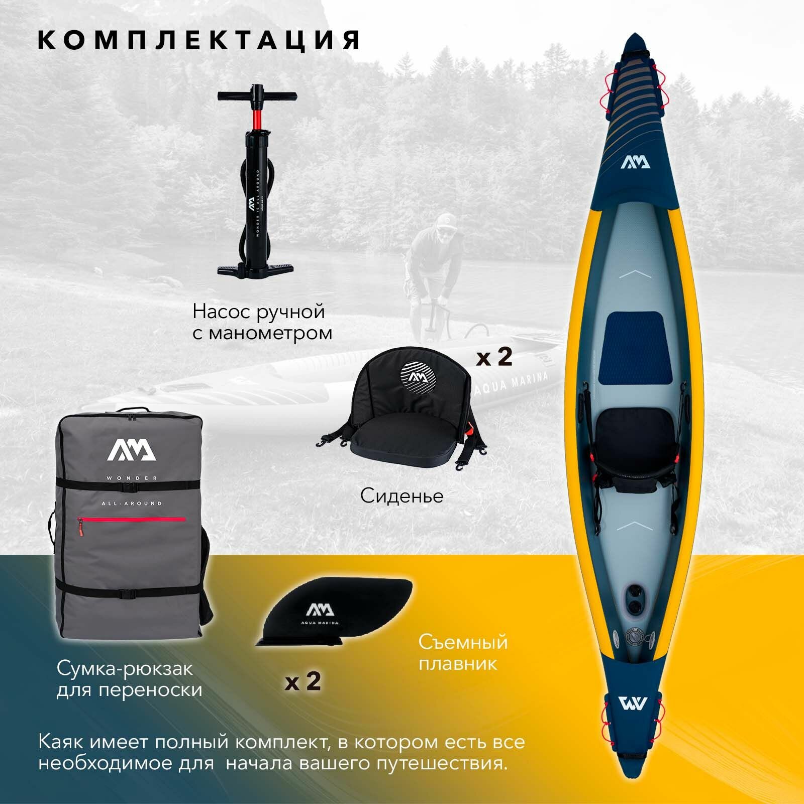 Каяк надувной двухместный Aqua Marina Tomahawk AIR-K 440 размеры 440x78 см, в комплекте рюкзак насос плавник (AIR-K 440) интересное: