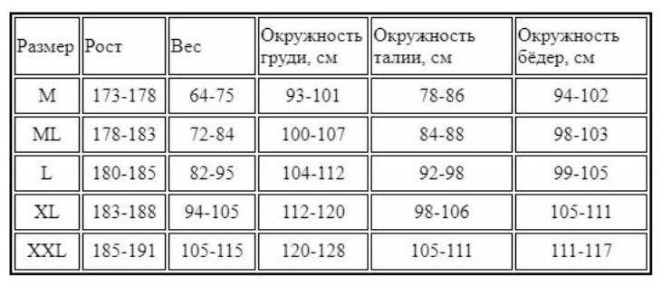 | Тип гидрокостюма | мокрый |