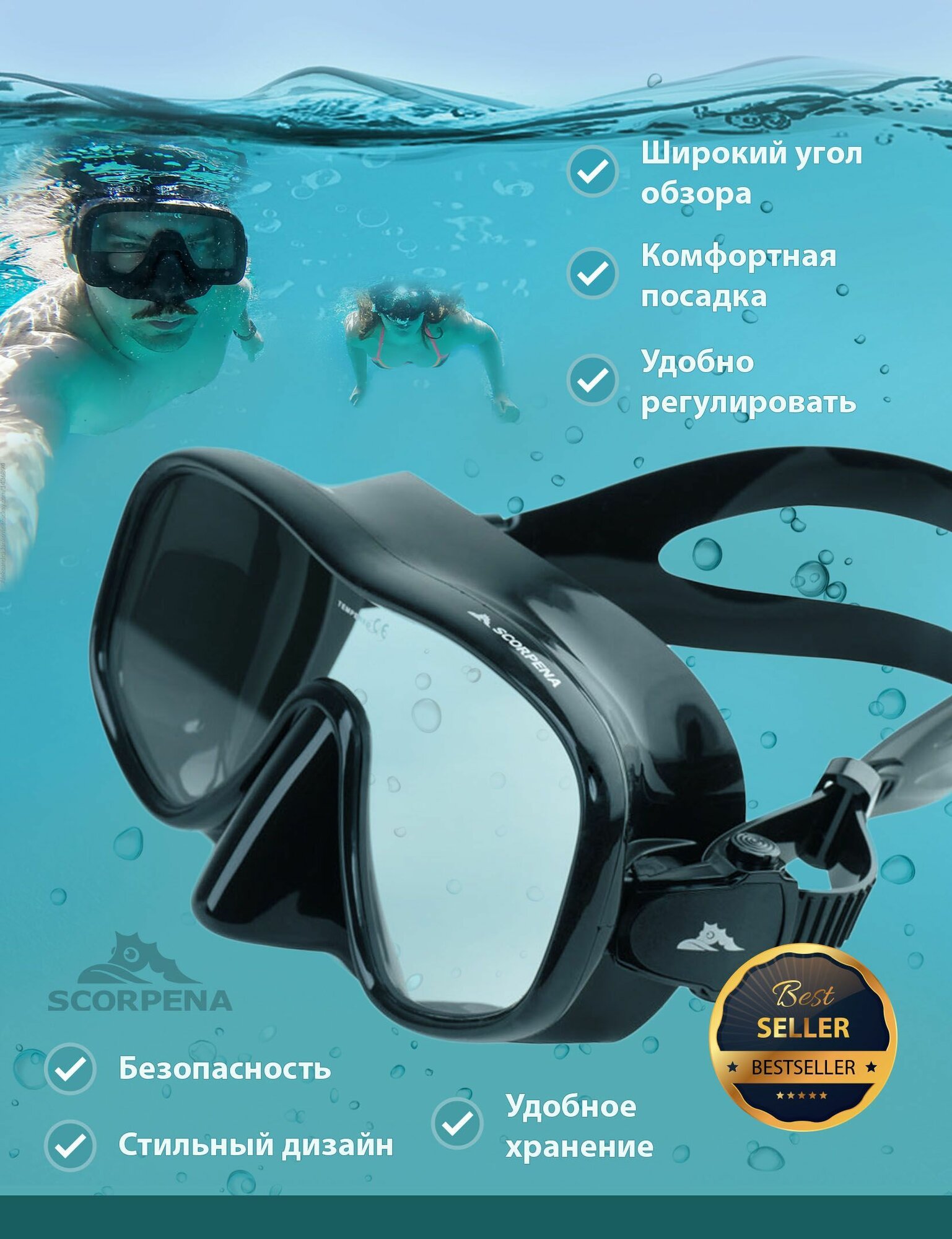 Маска Scorpena D, безрамная , Чёрный интересное: