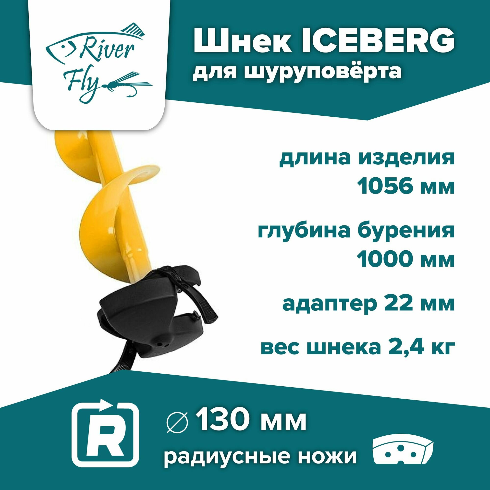 Комплект: шнек ледобура Iceberg-130(R) (SA-130R), адаптер 22 мм Rodstars, ножи ICEBERG-130(R) мокрый лед, киянка, черпак рыбака