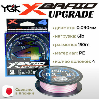 Шнур PE YGK X-BRAID Upgrade X4 #0.2/4LB (150 м, 0.074 мм, 1.82 кг, бело-розовый)
