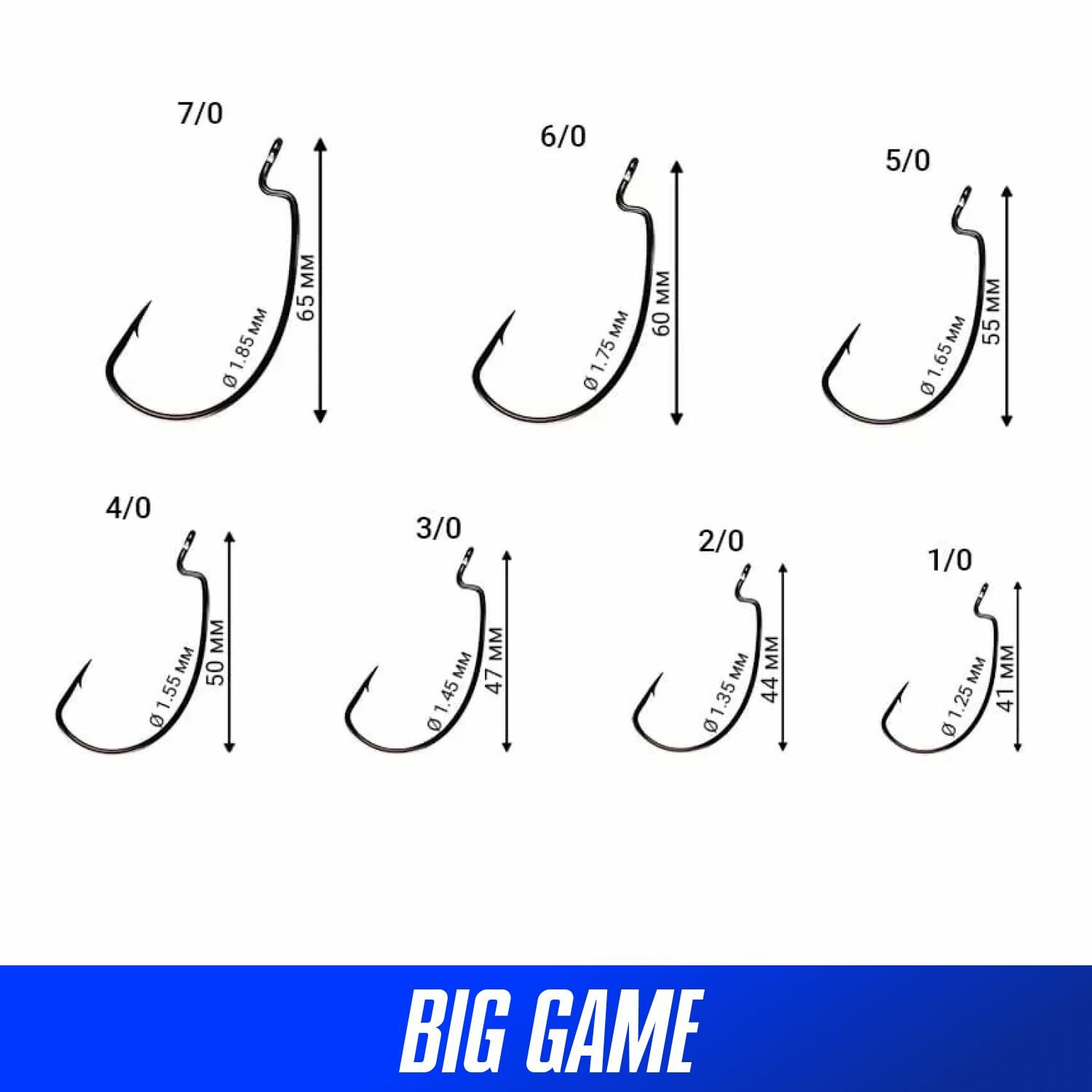 Крючки офсетные Crazy Fish Big Game Offset Hook №2/0 длина 44 мм 7 шт