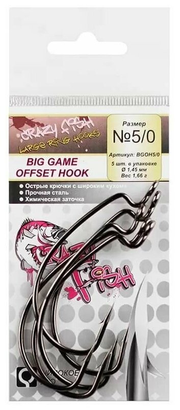 Ниже Вы можете прочитать отзывы на Крючки офсетные Crazy Fish Big Game Offset Hook №5/0 длина 55 мм 5 шт, ознакомится с подробными характеристиками, посмотреть интересные обзоры и фотографии на Крючки офсетные Crazy Fish Big Game Offset Hook №5/0 длина 55 мм 5 шт.