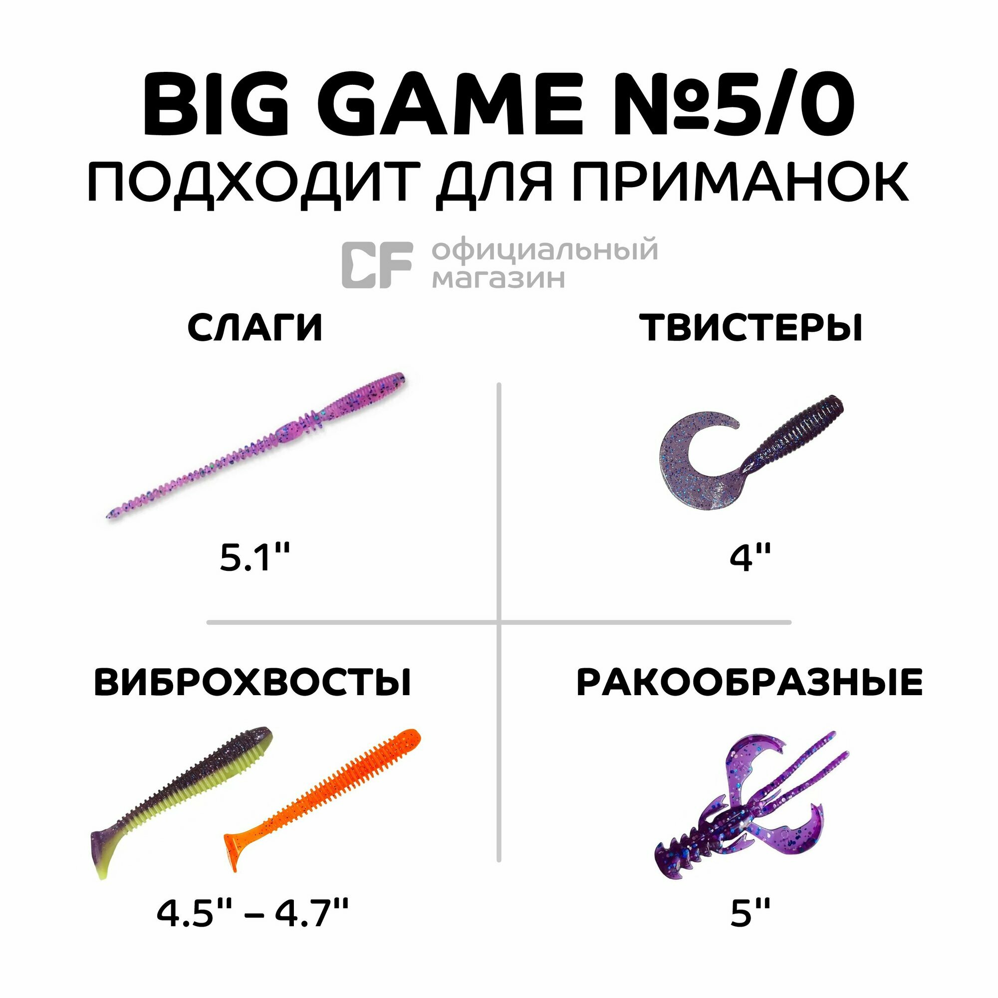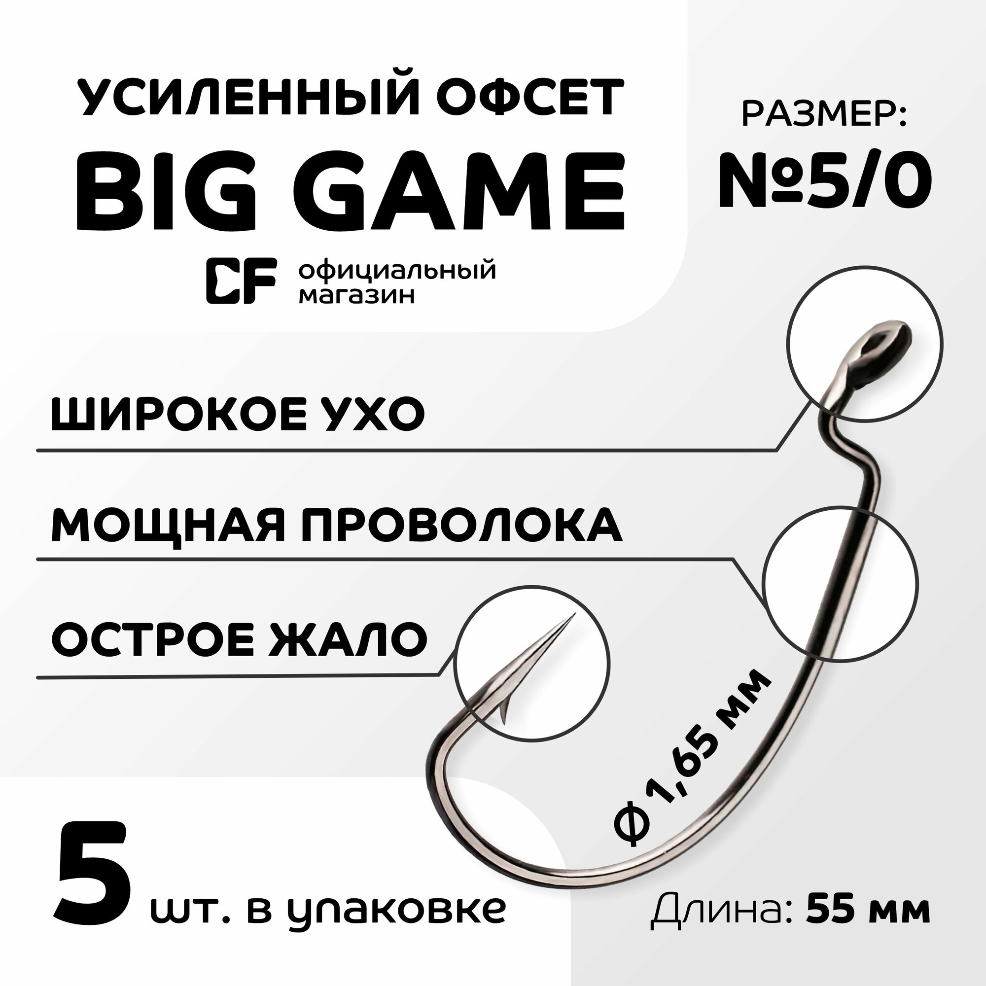 СохранитьКрючки офсетные Crazy Fish Big Game Offset Hook №5/0 длина 55 мм 5 шт интересное: