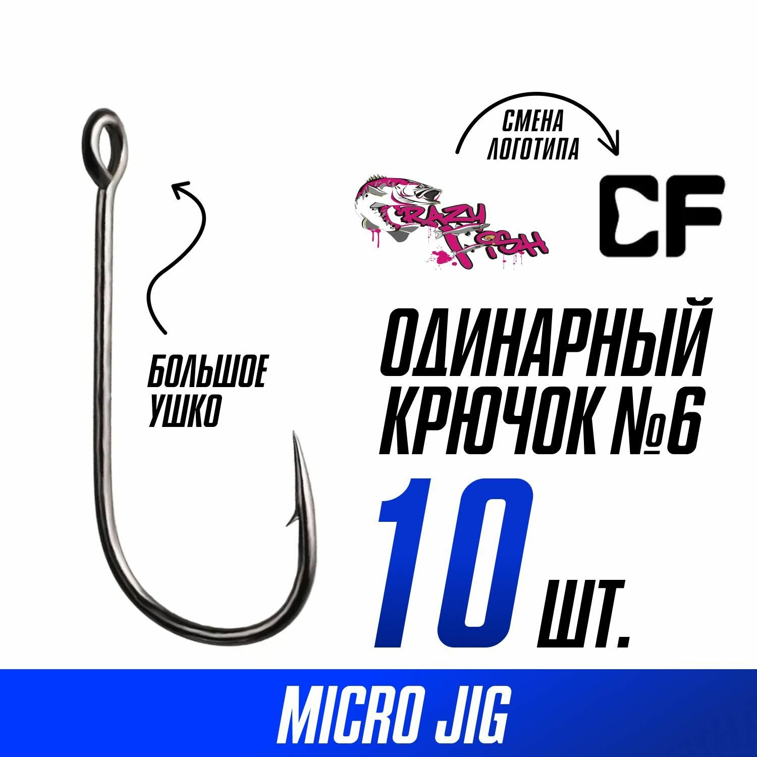 СохранитьКрючки одинарные Crazy Fish Micro Jig Joint Hook №6 длина 20 мм 10 шт. интересное: