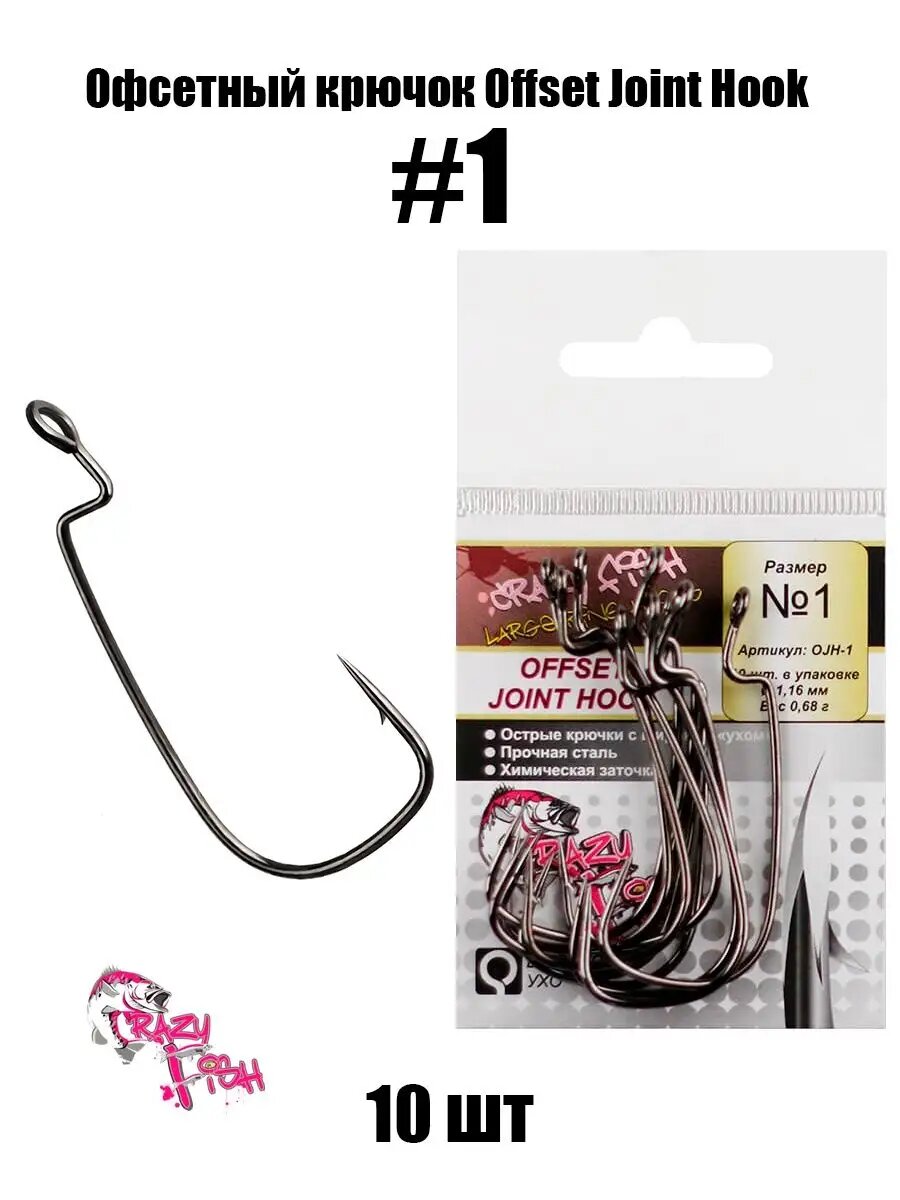 Крючки офсетные Crazy Fish Offset Joint Hook №1 длина 44 мм 10 шт.