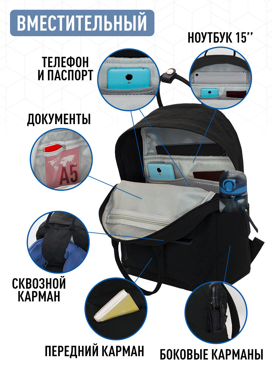 Рюкзак для школы и города черный базовый унисекс 15" интересное: