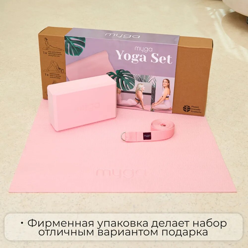 Купить Набор для йоги (коврик, ремень, блок) MYGA, розовый