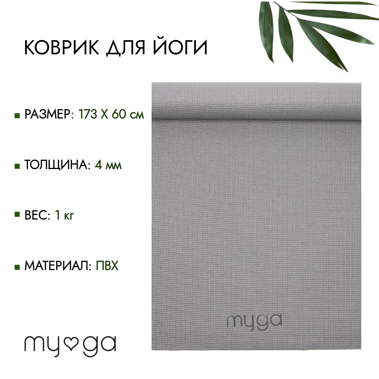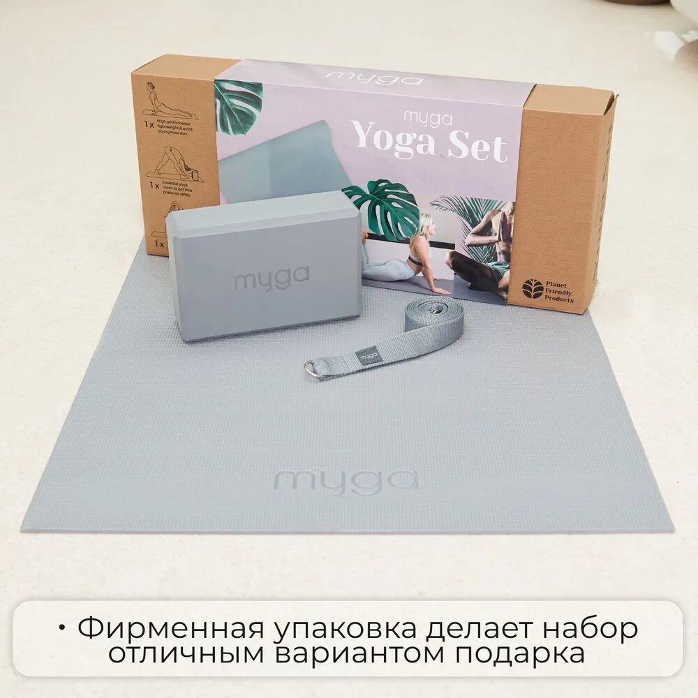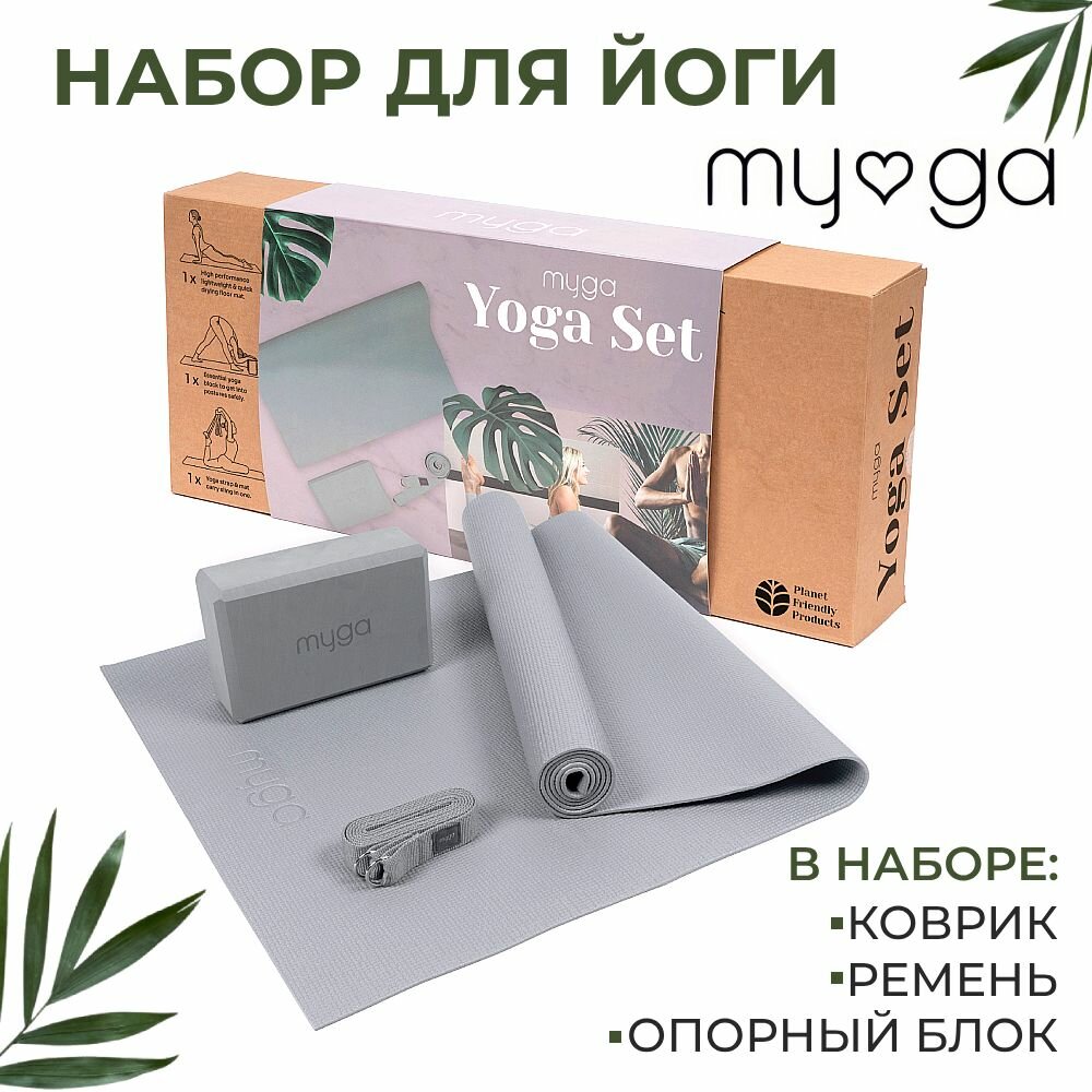 Набор для йоги (коврик, блок, ремень) MYGA, серый интересное: