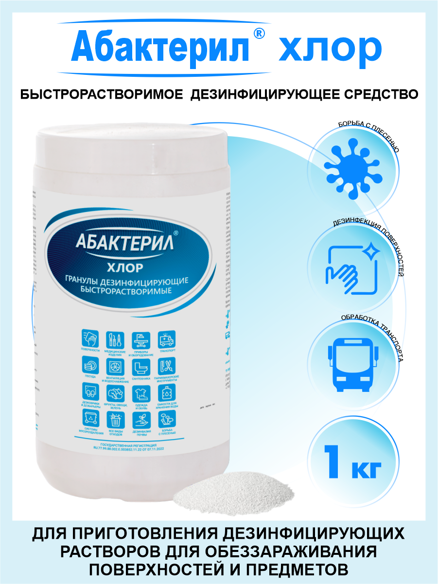 Дезинфицирующее средство Абактерил Хлор гранулы 1 кг. интересное: