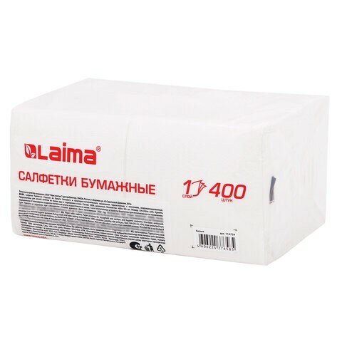 Салфетки Лайма бумажные 400 шт., 24х24 см, "Big Pack", белые, 100% целлюлоза, LAIMA, 114724