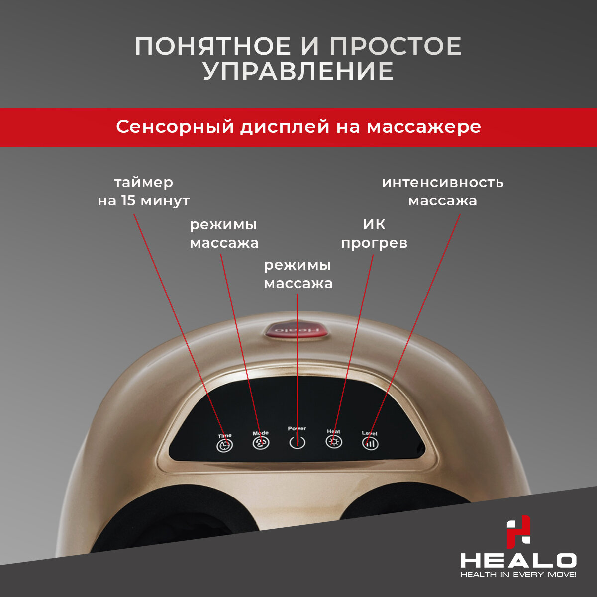 Массажер для ног HEALO с подогревом, 3 режима 3 скорости СМ2704 золотой интересное: