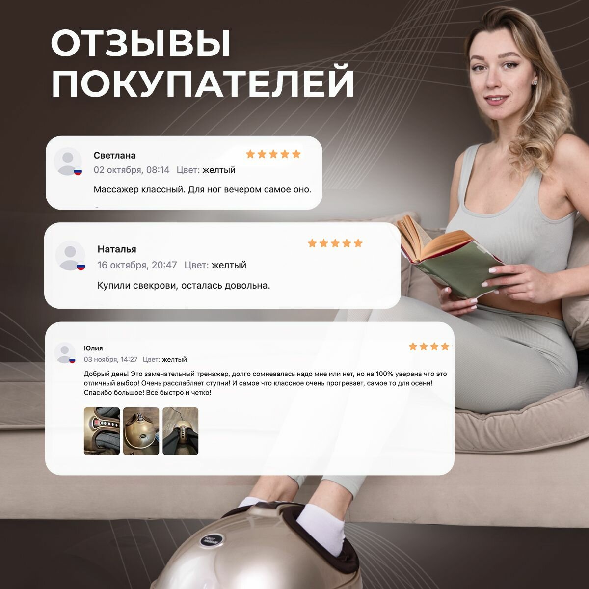 Массажер для ног электрический, роликовый, воздушно-компрессионный с прогревом, 4 программами массажа, 2 мотора СМ2709 золотой