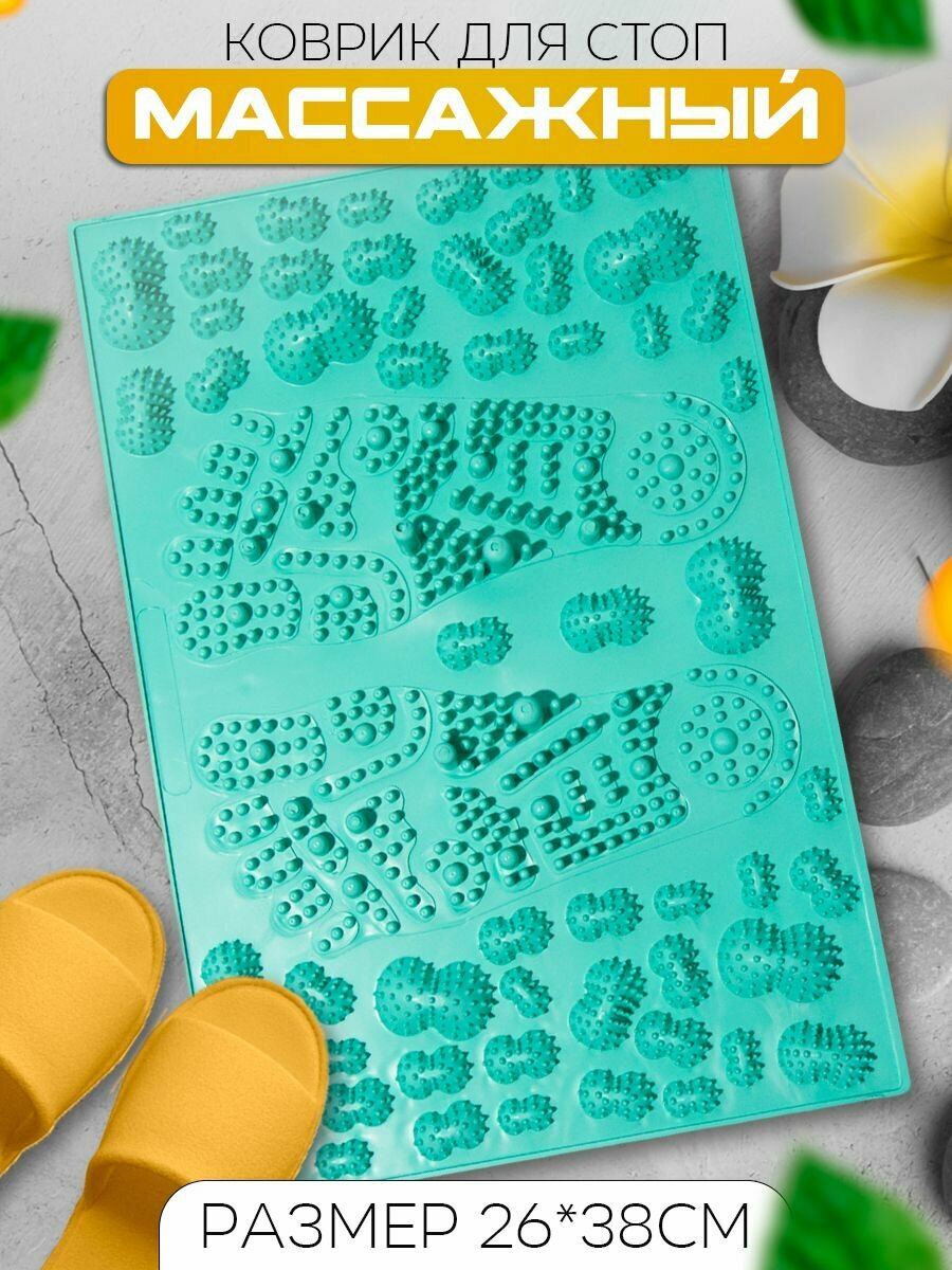 Массажный коврик для ног и стоп ортопедический 26х38 см ONHILLSPORT мятный