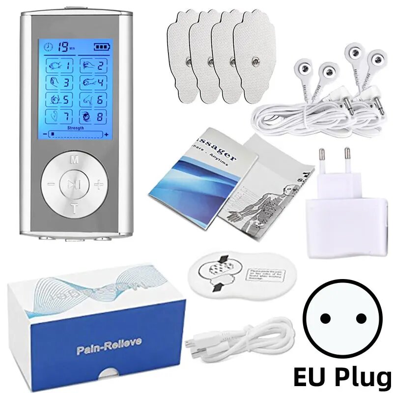 Электрический стимулятор мышц Ems, 8 режимов, искусственный инструмент, электростимулятор, физиотерапия, EU PLUG