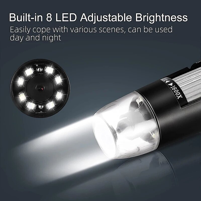 Микроскоп электронный, 1000X, 1600X, 8 светодиодов, 2 МП, с подставкой, 3 IN 1 Lift Stand, 1600X интересное: