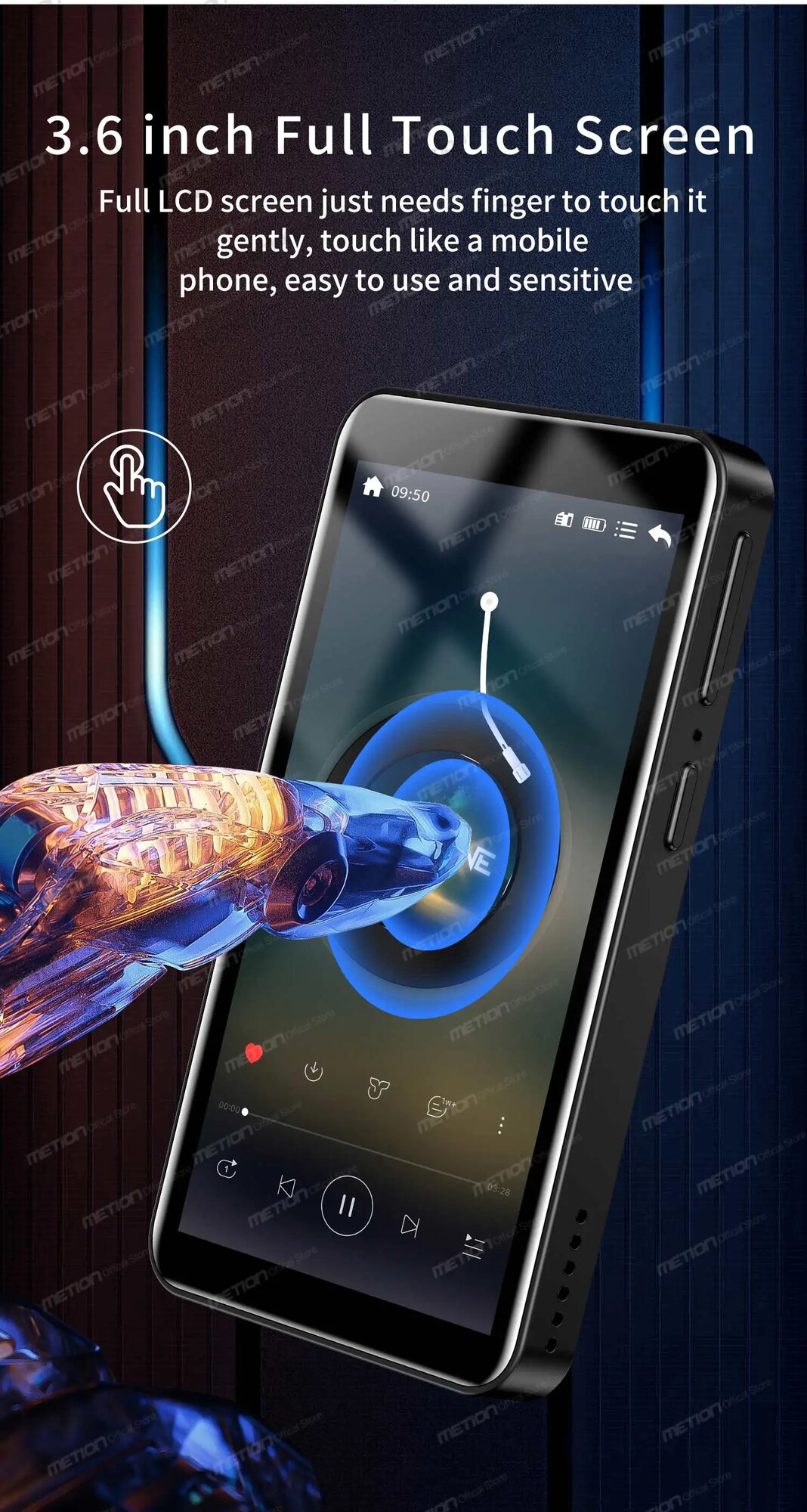Bluetooth-плеер с сенсорным экраном 3,6 дюйма 32 Гб, Black, 8 Гб