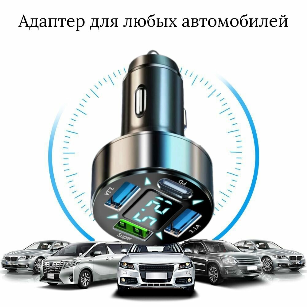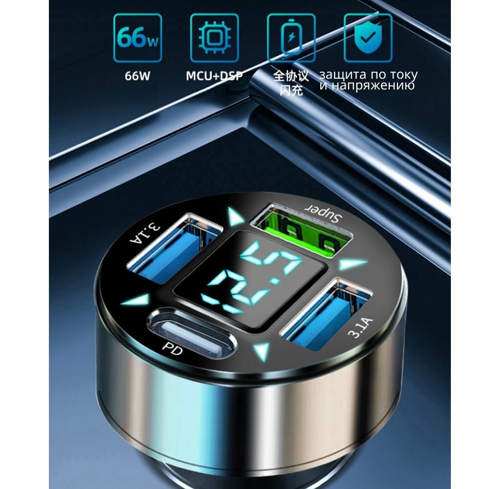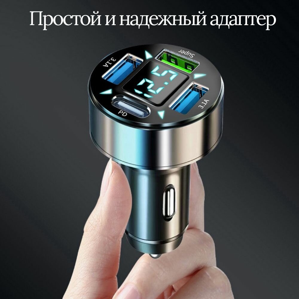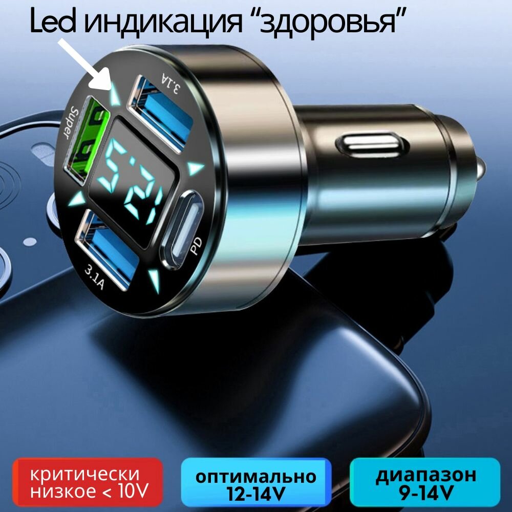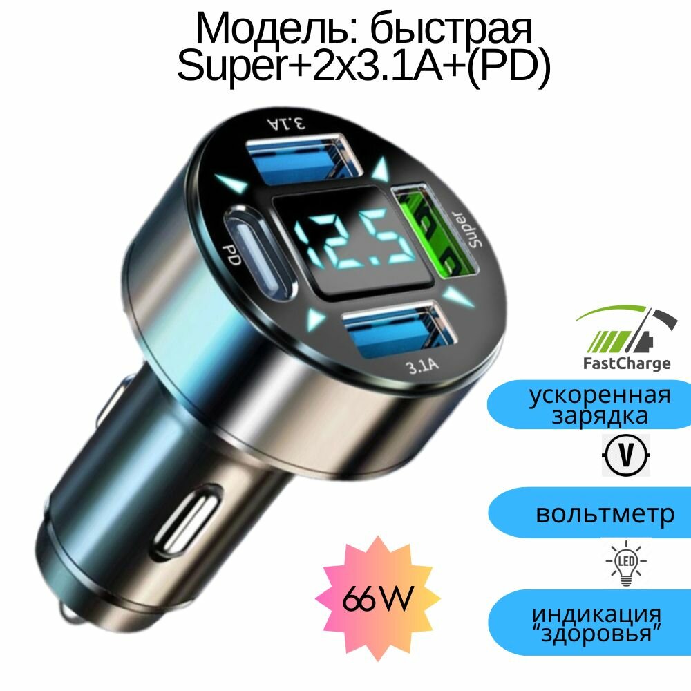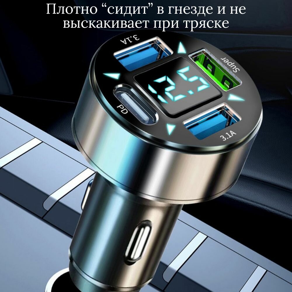 Автомобильная зарядка быстрая USB_Super+3.1A+PD с вольтметром интересное: