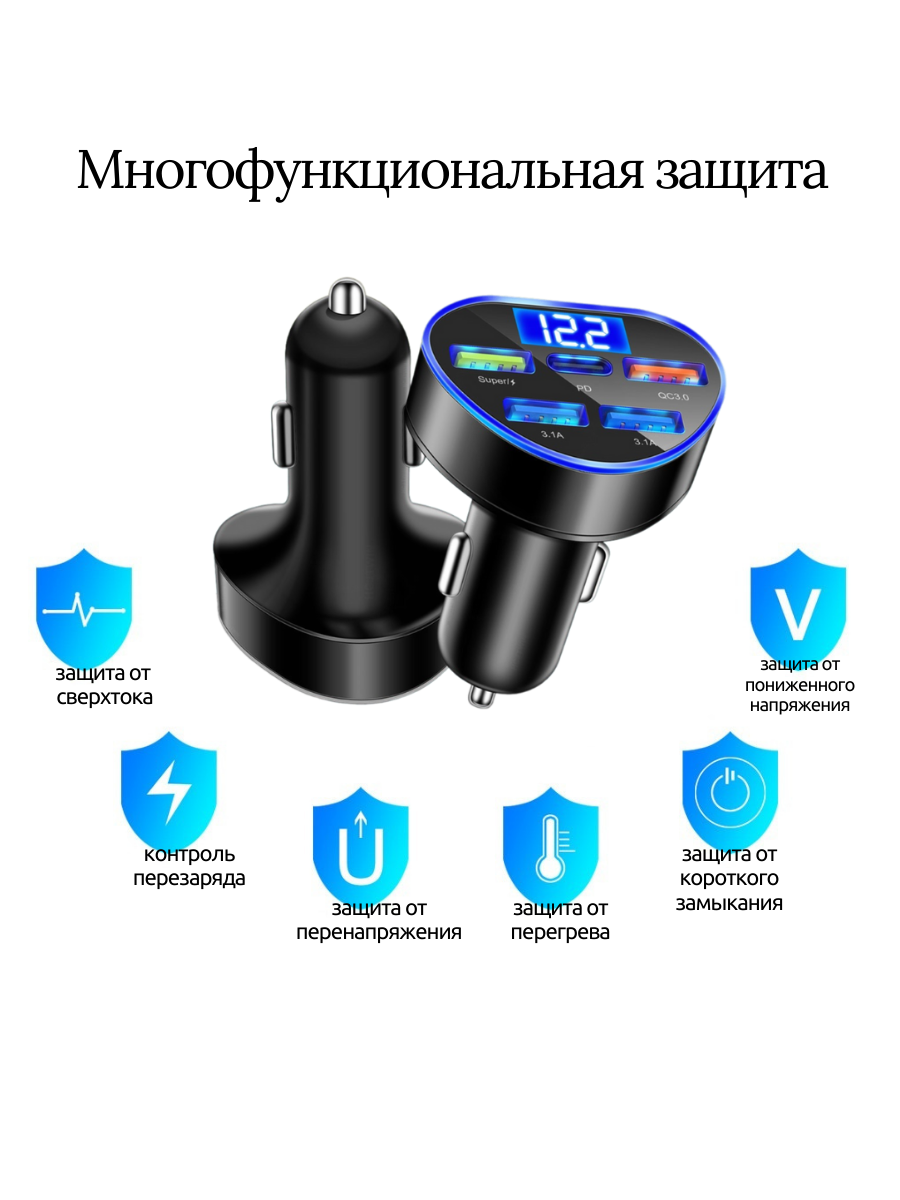 | Особенности | автомобильный вольтметр / Быстрая зарядка / подсветка |