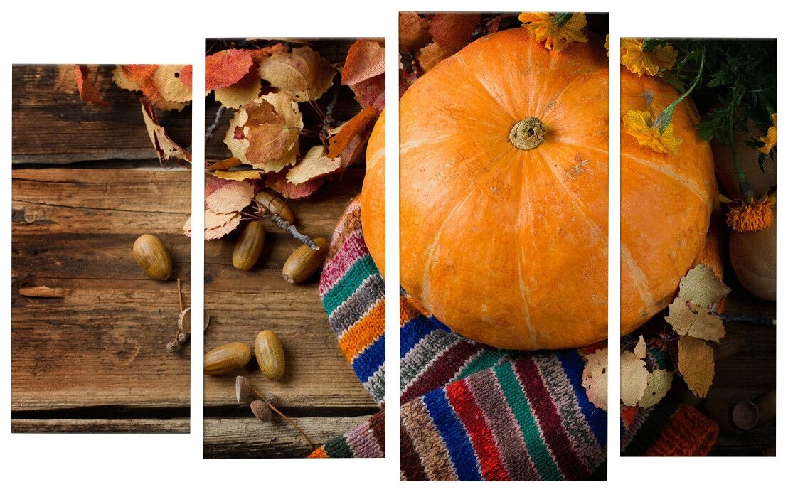 Картина модульная Картиномания "Осенний натюрморт с тыквой и желудями" размер 140х90 см интересное: