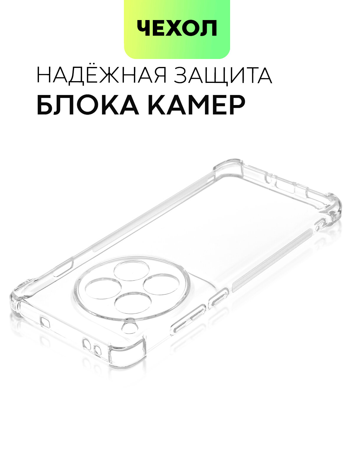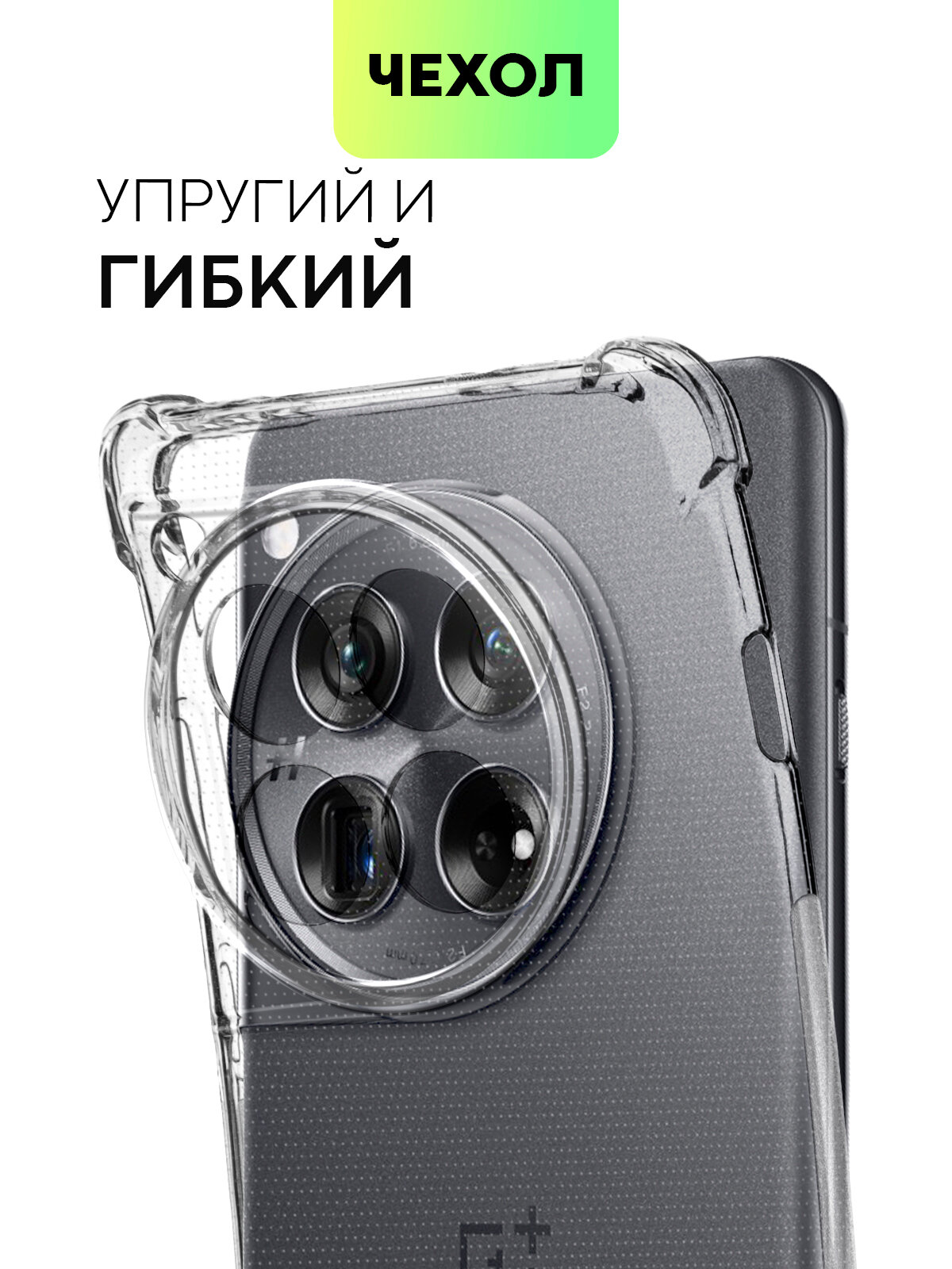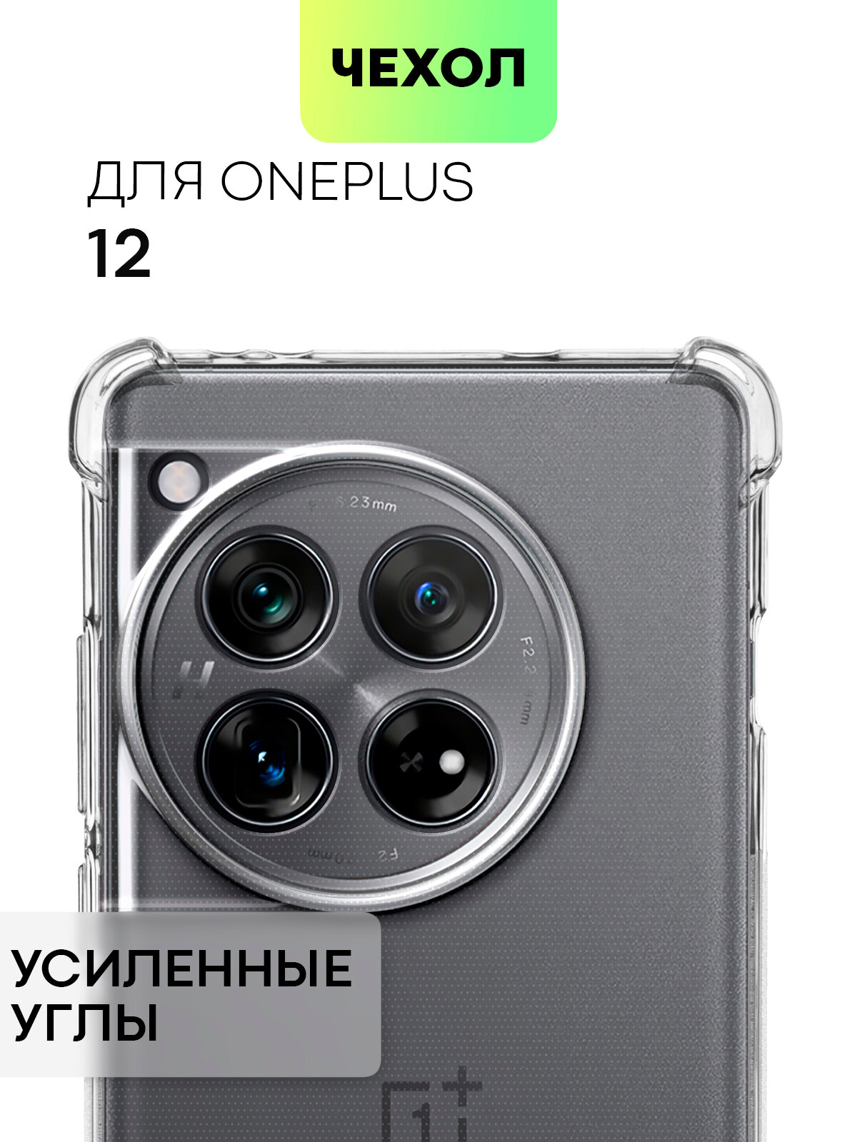 Противоударный чехол для OnePlus 12 (Ван Плюс 12, Оне Плас 12) силиконовый чехол, усиленные углы, бортик (защита) модуля камер, прозрачный, BROSCORP
