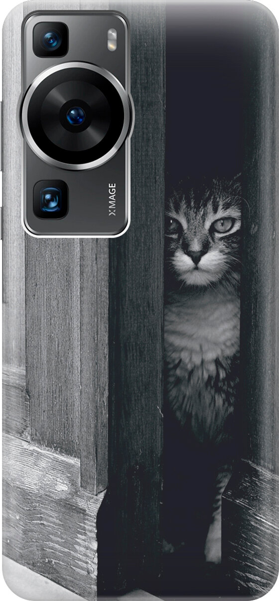 Купить Силиконовый чехол на Huawei P60, Хуавей П60 с принтом "Выглядывающий кот"