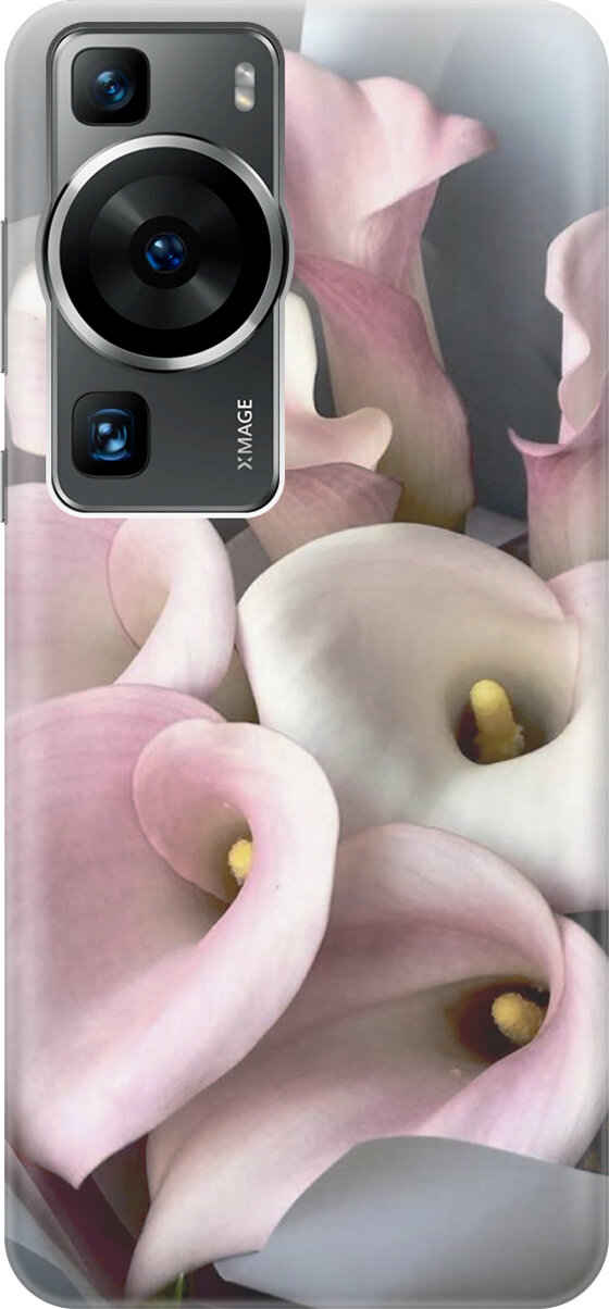 Купить Силиконовый чехол на Huawei P60, Хуавей П60 с принтом "Розовые каллы"