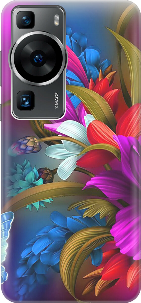 Купить Силиконовый чехол на Huawei P60, Хуавей П60 с принтом "Фантастические цветы"