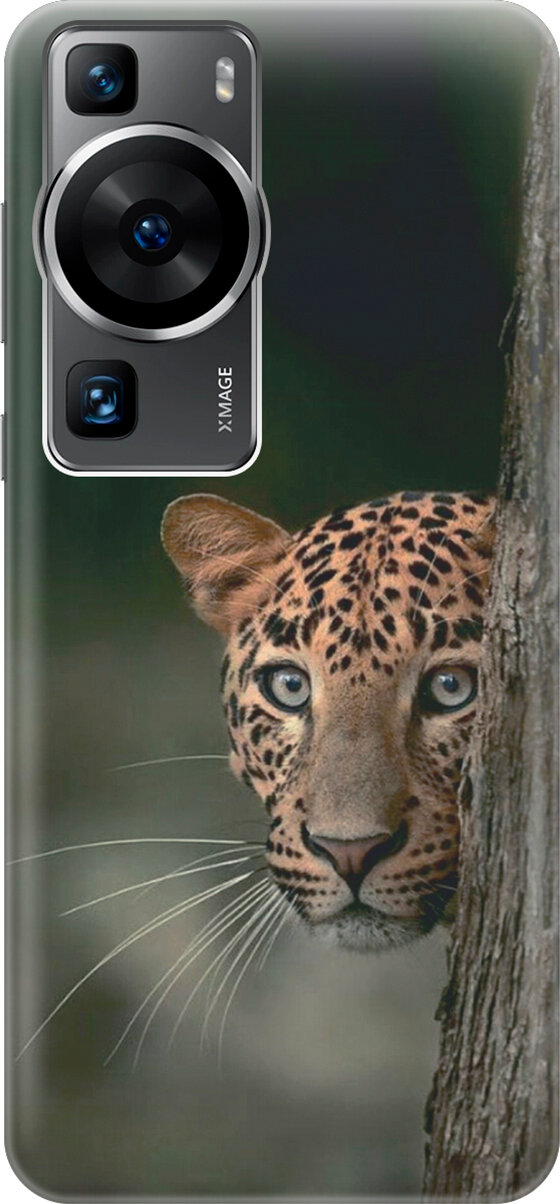 Купить Силиконовый чехол на Huawei P60, Хуавей П60 с принтом "Подглядывающий леопард"