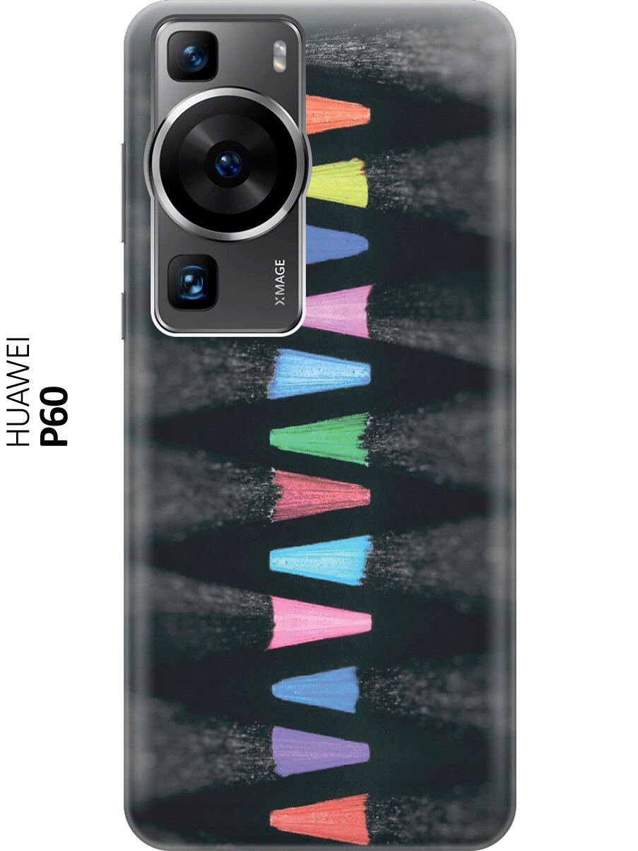 Купить Силиконовый чехол на Huawei P60, Хуавей П60 с принтом "Разноцветные карандаши"