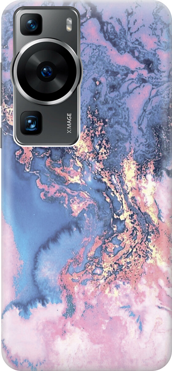 Силиконовый чехол на Huawei P60, Хуавей П60 с принтом "Сине-розовый мрамор"
