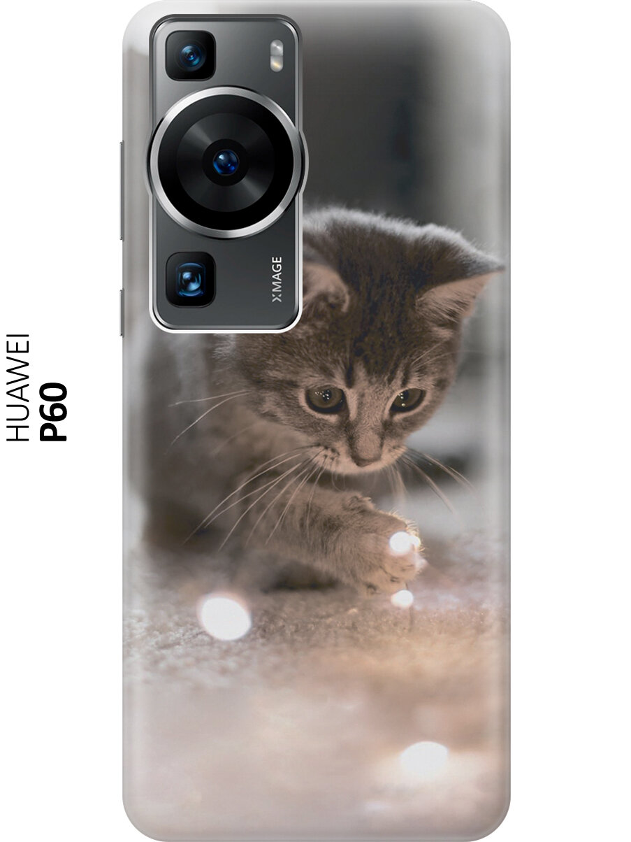 Купить Силиконовый чехол на Huawei P60, Хуавей П60 с принтом "Котенок и свет"