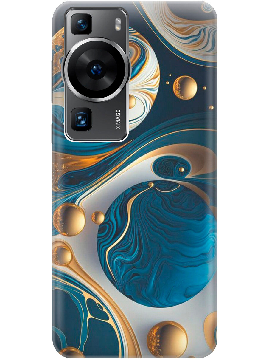 Купить Силиконовый чехол на Huawei P60 / Хуавей П60 с рисунком "Сине-золотые фигуры"