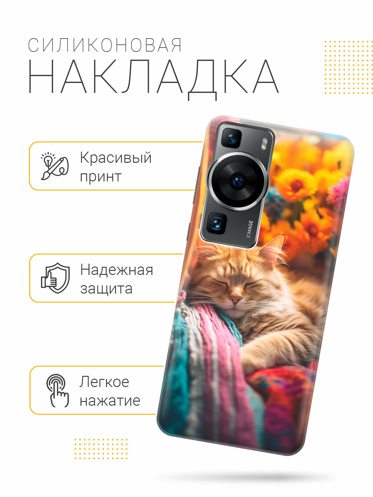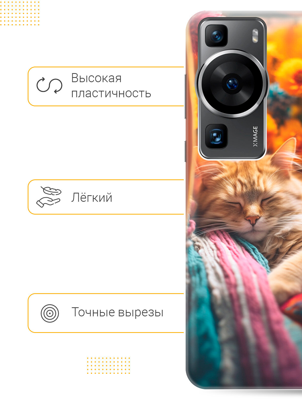 СохранитьСиликоновый чехол на Huawei P60 / Хуавей П60 с рисунком "Спящий на пледе котик" интересное: