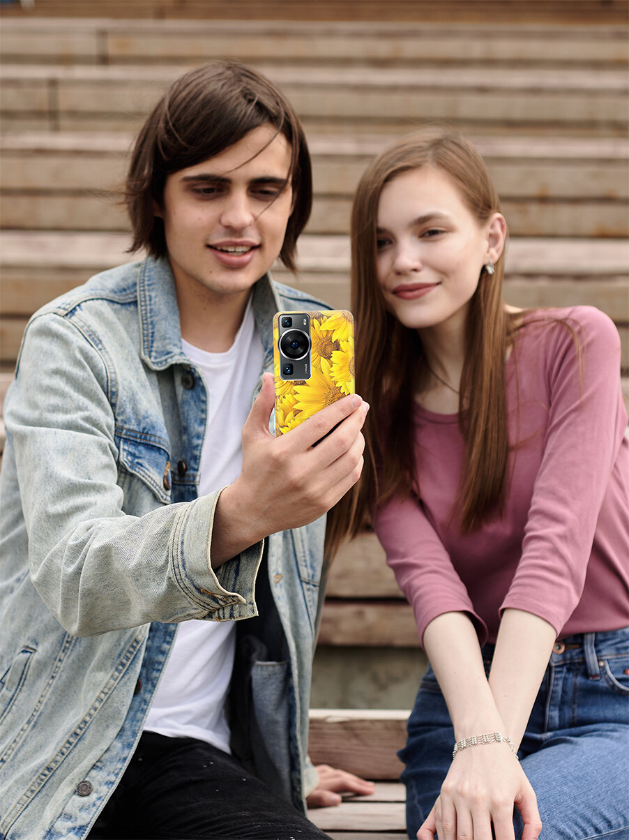 Купить Силиконовый чехол на Huawei P60, Хуавей П60 с принтом "Море подсолнухов"