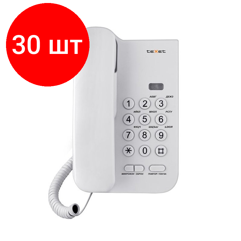 Комплект 30 штук, Телефон проводной teXet ТХ-212 светло-серый интересное: