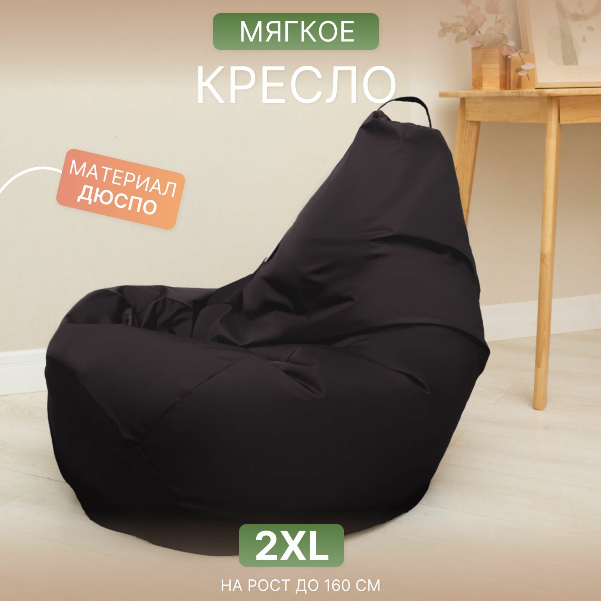Кресло мешок Груша 2XL черный Дюспо