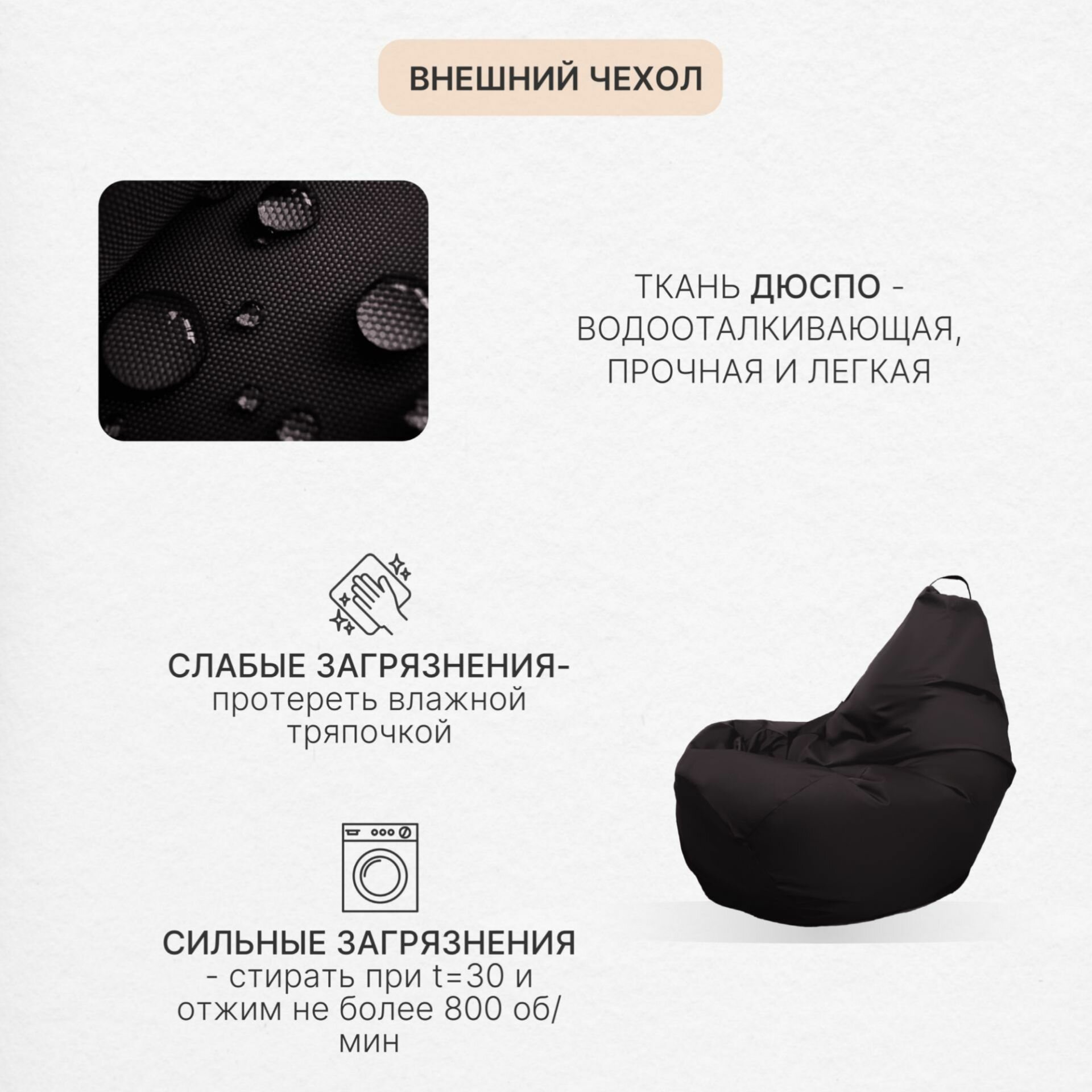 Кресло мешок Груша 3XL черный Дюспо