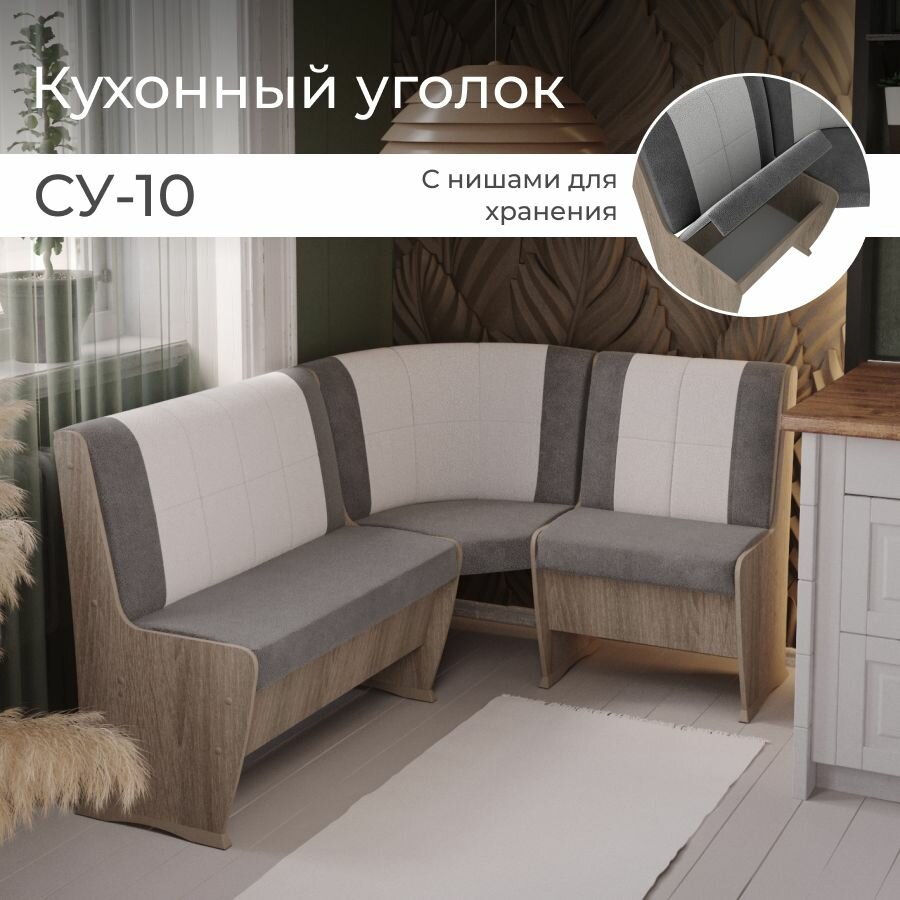 Скамья угловая СУ-10, BONMEBEL, Винтаж/серый-жемчуг , 110х150х85 кухонный уголок