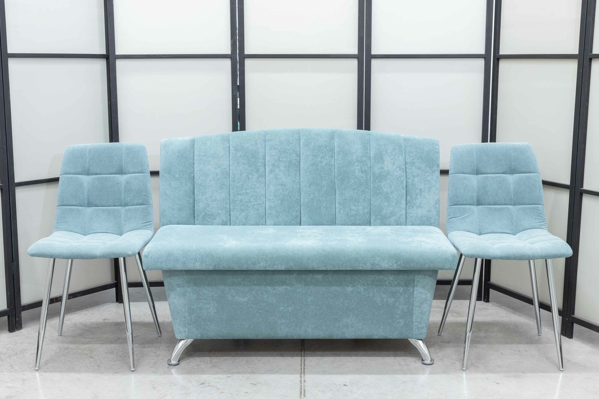 Купить Кухонный диван Альт со стульями (2 шт.), 120х56 см, обивка моющаяся, антивандальная, антикоготь, цвет - ментол