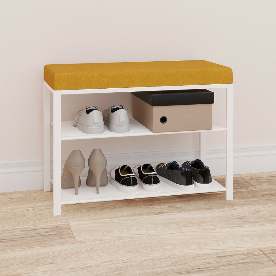ЗМИ Банкетка Торонто 23S (toronto 23S banquet&shoes) цвет каркаса белый, цвет сиденья горчичный Бт23 .