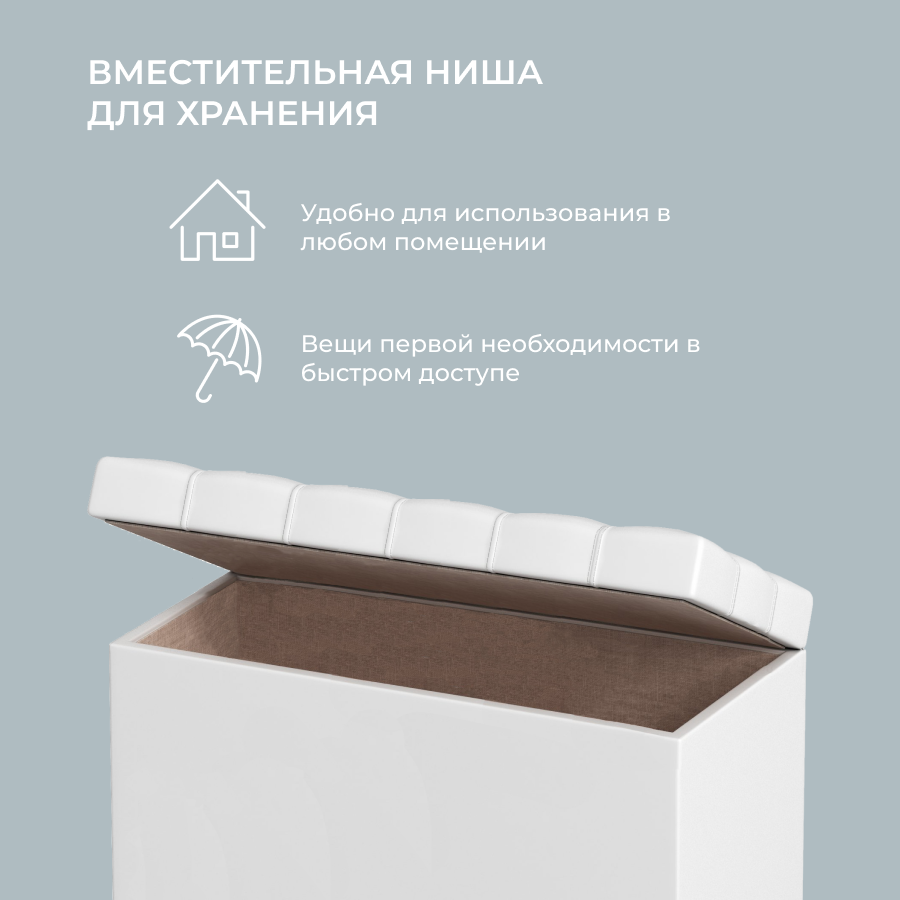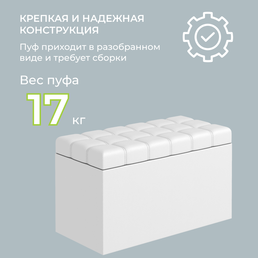 Пуфик Квадро 2, BONMEBEL, белый, 74х36х44, пуф с ящиком для хранения, экокожа, пуфик в прихожую, мебель интересное: