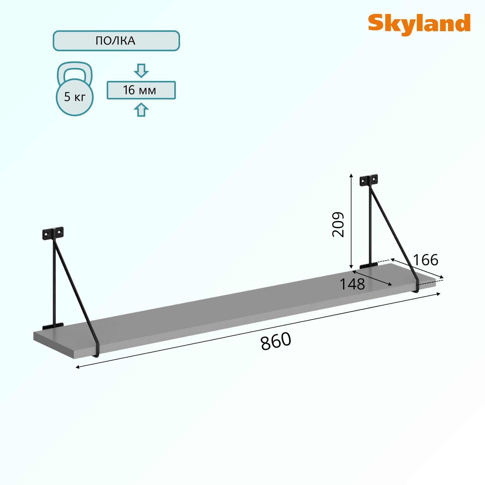 Настенная полка прямая / навесная полка для книг SKYLAND COFFEE SH3-BAR, белый, 86х16.6х20.9 см