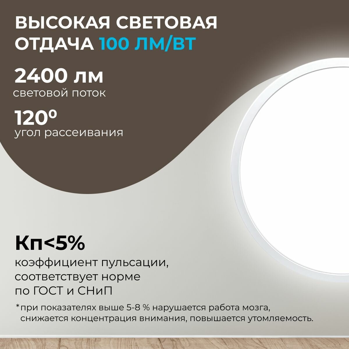 Светильник потолочный светодиодный накладной Apeyron 18-125, SPIN, 24Вт, 230В/50Гц, 2400лм, 4000К, 230х25,круг,белый