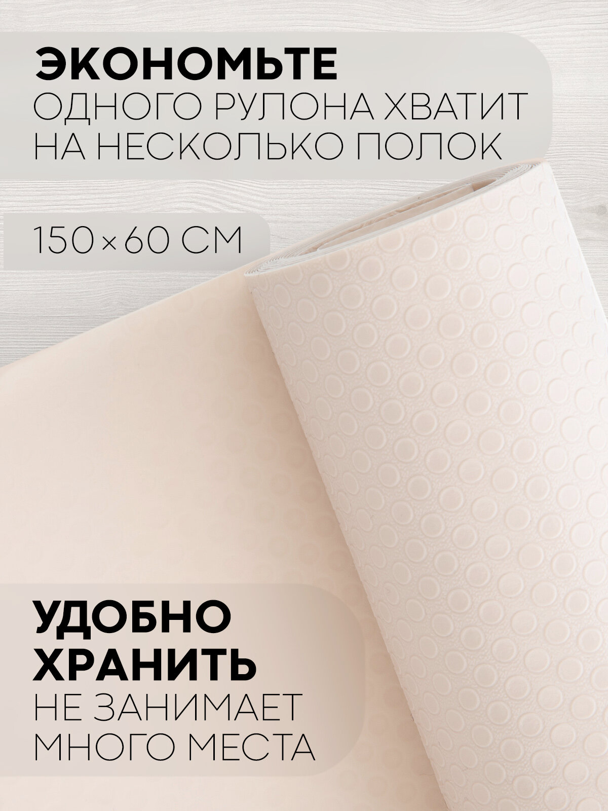 Водостойкий противоскользящий ПВХ коврик-подстилка для кухонных полок, ящиков, холодильника (универсальный 150 см х 60 см в рулоне), белый