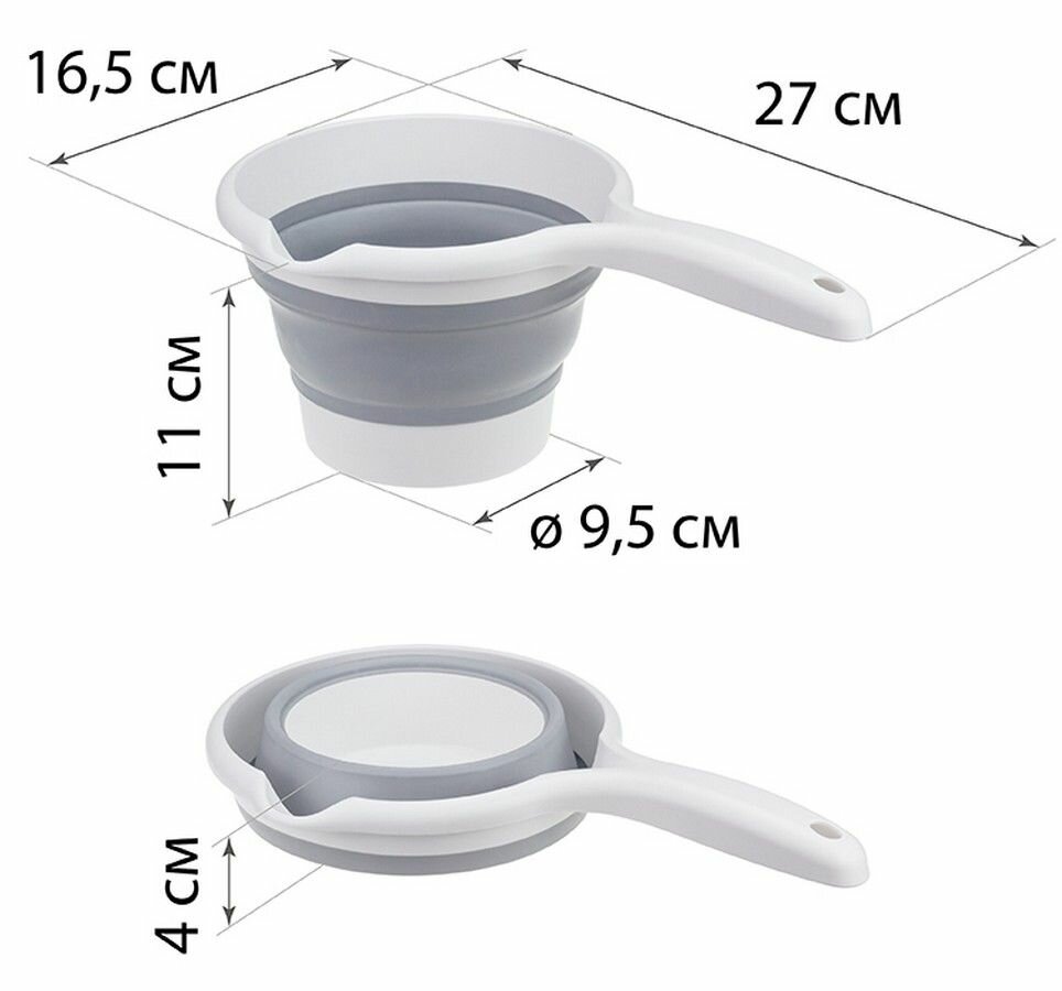 Ковш складной «Флекс», 1 л, 27×16,5×11 см, цвет смоки
